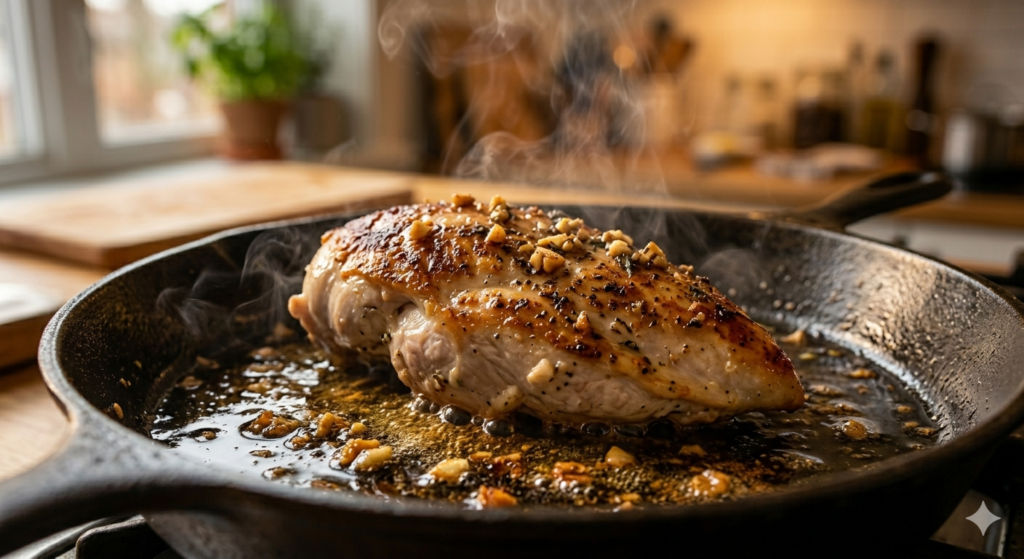 Add the chicken to the pan and cook for 5–6 minutes on each side until golden brown and fully cooked.